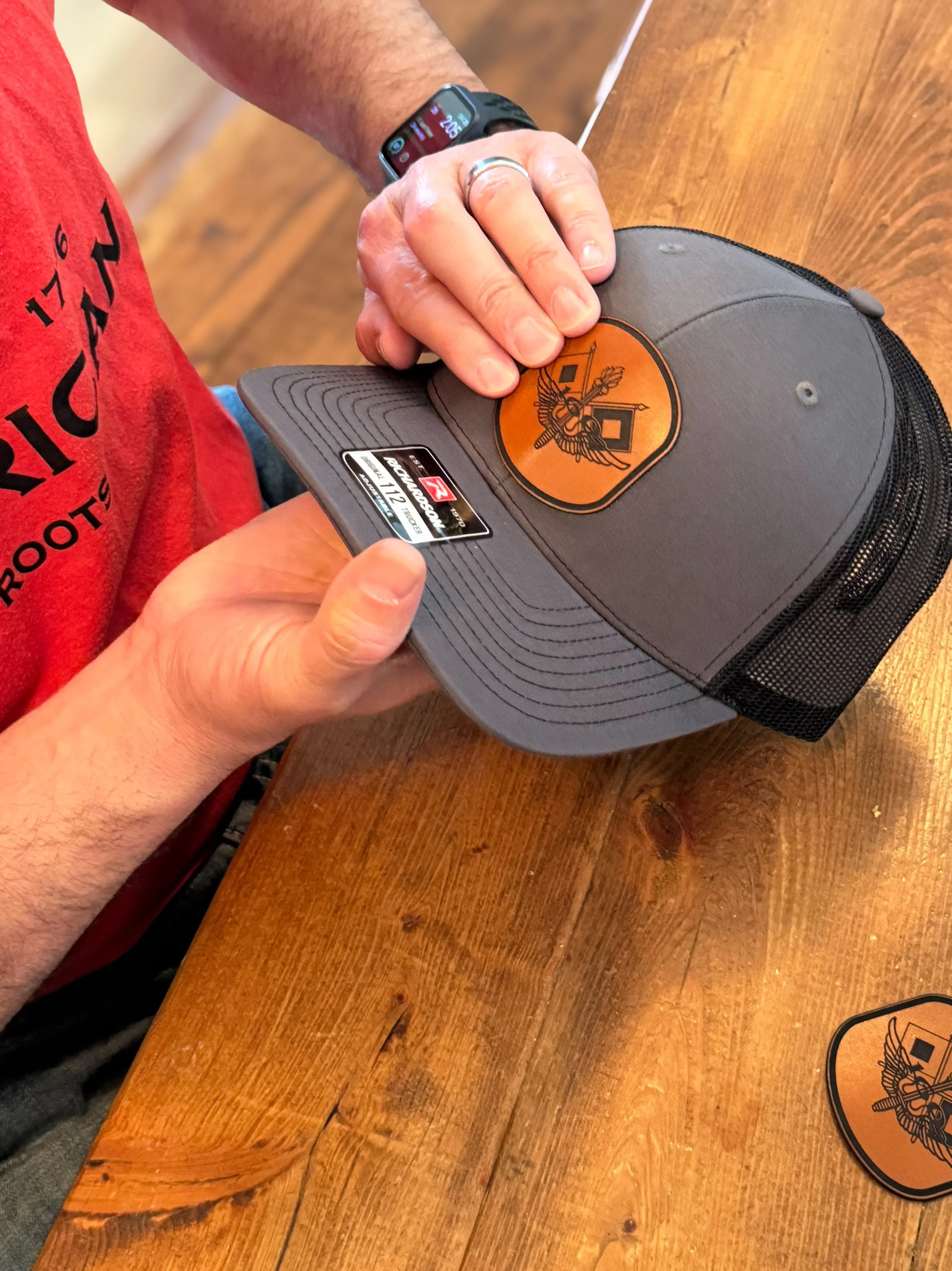 Once a design, patch shape, and hat options have been decided on we will discuss/arrange payment options. Payments are required before we begin burning patches, and putting hats together.